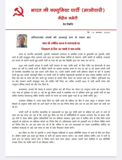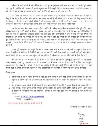 दरअसल, जो लेटर वायरल हो रहा है, वह कम्युनिस्ट पार्टी माओवादी की तरफ से जारी किया है। खास बात यह है कि, इस तरह का पत्र पहली बार नक्सली संगठन की केंद्रीय समिति ने जारी किया है। यह पत्र 15 सितंबर 2025 को लिखा गया और अब यह वायरल हो रहा है।