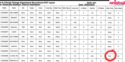 कवर्धा. छत्तीसगढ़ के कवर्धा जिले में फारेस्ट गार्ड की भर्ती के लिए फिजिकल टेस्ट के दौरान गजब हो गया. 200 मीटर की लंबी दौड़ प्रतियोगिता के बाद जारी रिजल्ट में बताया गया कि 2 कैडिडेट ने इसे 14.7 और 19.6 सेकंड में पूरी की. जबकि वर्ल्ड रिकॉर्ड होल्डर जमैका के उसेन बोल्ट ने 19.19 सेकंड में यह दूरी पूरी कर इस रिकॉर्ड को अपने नाम किया था. यानी या तो एक कैंडिडेट ने वर्ल्ड रिकॉर्ड तोड़ा है या फिर पूरे मामले में ही झोल है. बहरहाल बीजेपी इसे लेकर सोशल मीडिया में भी सवाल उठा रही है. अफसर भी अलग-अलग तर्क दे रहे हैं.